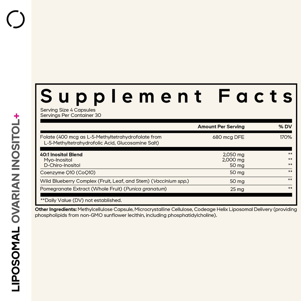 CodeAge Liposomal Ovarian Inositol+, Myo-Inozitol Ovarian cu Coenzima Q10 Codeage Liposomal Ovarian Inositol+ este un supliment inovator creat pentru a sprijini sanatatea ovariana si a promova un echilibru hormonal optim. Conceput cu tehnologia avansata liposomala, acest produs garanteaza o bio1itate superioara, asigurandu-se ca ingredientele active sunt absorbite eficient de organismul tau.Cu o combinatie puternica de ingrediente esentiale si tehnologie , acest produs iti ofera suportul de care ai nevoie pentru a te simti mai bine. Ce este inozitolul si cum te ajuta?Inozitolul este un carbohidrat natural care joaca un rol crucial in procesul metabolic al celulelor. Studiile au aratat ca inozitolul poate ajuta la: Reglarea ciclului menstrual: Contribuie la mentinerea regularitatii ciclului menstrual, sprijinind sanatatea ovariana.Managementul sindromului ovarului polichistic (PCOS): Inozitolul este recunoscut pentru efectele sale benefice asupra simptomelor PCOS, ajutand la imbunatatirea sensibilitatii la insulina si la reducerea nivelurilor de androgeni.Imbunatatirea fertilitatii: Prin sprijinul pe care il ofera ovulatiei si sanatatii hormonale, inozitolul poate juca un rol important in cresterea sanselor de conceptie. Beneficiile formulei liposomale:Tehnologia liposomala inseamna ca ingredientele sunt inconjurate de un strat de lipide care ajuta la protejarea lor in timpul procesului digestiv. Aceasta asigura o absorbtie mai eficienta in organism, maximizand beneficiile pentru sanatate. Myo-Inozitol si D-Chiro-Inozitol (40:1) – sustin sanatatea ovariana, echilibrul hormonal si fertilitatea Folat 5-MTHF – o forma activa de acid folic, usor utilizabila de organism, recomandata femeilor care incearca sa ramana insarcinate sau sunt deja insarcinate Coenzima Q10 Fitosom – ofera suport antioxidant, sprijina energia celulara si echilibrul hormonal Extract de rodie – cunoscut pentru proprietatile antioxidante si pentru sprijinul in gestionarea simptomelor PCOS Extract de afine salbatice – bogat in compusi activi cu rol antioxidant si sprijin pentru sanatatea generala Beneficii: Sustine echilibrul hormonal si sanatatea ovulatiei Contribuie la reglarea ciclului menstrual si sustine fertilitatea Ajuta la gestionarea simptomelor PCOS si la imbunatatirea sensibilitatii la insulina Ofera suport antioxidant si sustine sanatatea celulara Include folat 5-MTHF – forma activa, cu absorbtie superioara fata de acidul folic traditional Formula vegana, fara gluten, lactate, soia sau OMG – potrivita pentru diverse regimuri alimentare Fabricat in SUA, intr-o unitate certificata cGMP, pentru calitate si siguranta Flaconul contine 30 de portii *Produsul este un supliment alimentar si nu trebuie sa inlocuiasca o dieta variata si echilibrata si un stil de viata sanatos.