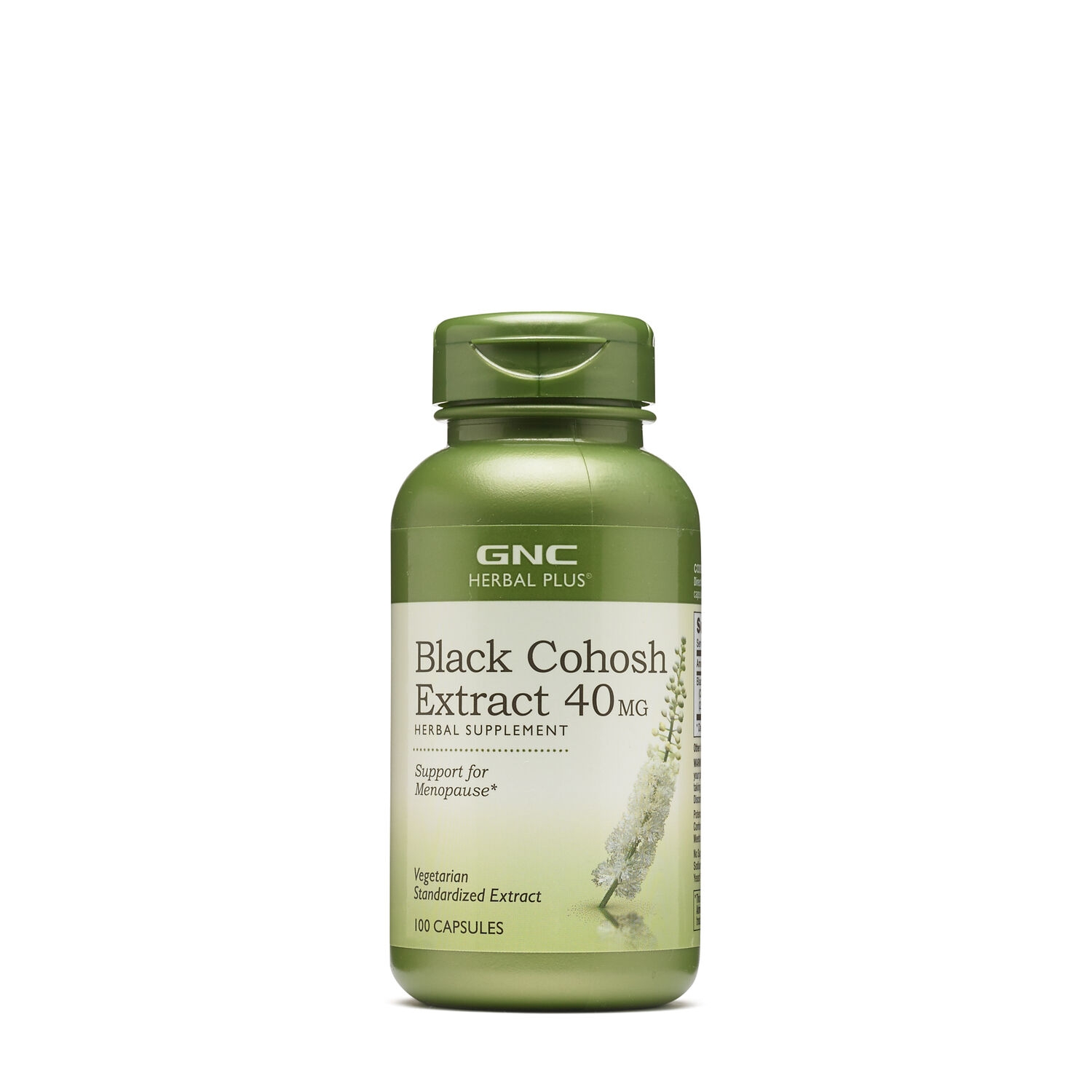 GNC Herbal Plus ® Extract Standardizat de Black Cohosh 40 mg Suport pentru menopauza. Acest produs contine un extract din radacina de Cohos negru (Cimicifuga racemosa). Cohosul negru este cunoscut pentru efectele benefice pe care le are in timpul menopauzei, fiind folosit pentru ameliorarea simptomelor neplacute ale acesteia. Extractul de Black Cohosh actioneaza ca un fitoestrogen natural, ameliorand simptomenele aparute o data cu menopauza, cum ar fi bufeurile, transpiratia, tulburarile emotionale. Beneficii: Contine 40 mg extract din radacina de cohos negru din care 1 mg este reprezentat de glicozide triterpenice; Produsul este unul vegetal, cu bio1itate si puritate ridicata; Nu contine: zahar, coloranti artificiali, arome artificiale, sodiu, grau, gluten, soia, lactate, fermenti; Fiecare flacon contine 100 de capsule, necesarul pentru maxim 100 de zile de administrare. *Produsul este un supliment alimentar si nu trebuie sa inlocuiasca o dieta variata si echilibrata si un stil de viata sanatos.