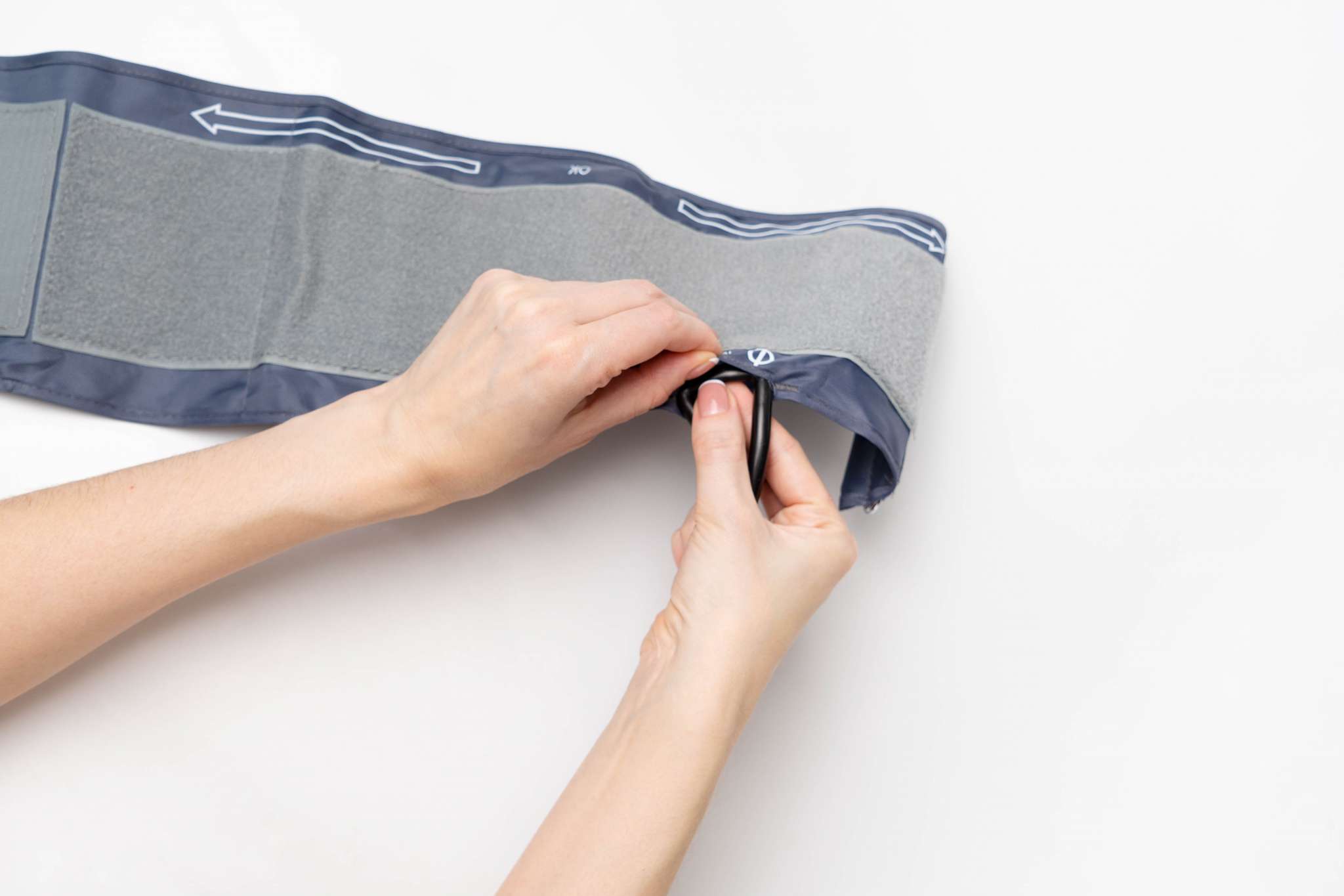 Inel metalic pentru fixare usoara – faciliteaza aplicarea corecta a mansetei, chiar si fara ajutor extern.