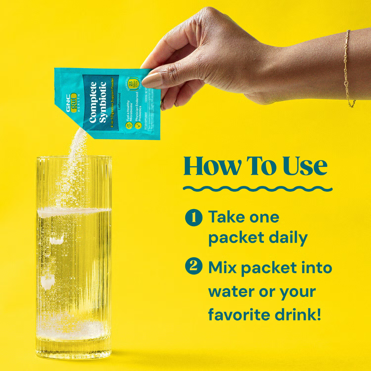 GNC Gut Health Complete Synbiotic 4-in-1 Digestive Support Powder, Formula Premium pentru Sustinerea Digestiei si a Imunitatii, cu Prebiotice, Probiotice si Postbiotice Sistemul digestiv este mai mult decat un simplu proces biologic – este centrul energiei, imunitatii si starii generale de bine.GNC Complete Synbiotic 4-in-1 Digestive Support Powder duce conceptul de ingrijire digestiva la urmatorul nivel, printr-o formula avansata ce combina prebiotice, probiotice, postbiotice si L-Glutamina intr-un singur produs complet. Aceasta pudra sinbiotica sustine microbiomul intestinal din toate directiile: hraneste bacteriile bune, introduce tulpini probiotice eficiente si ofera compusi bioactivi postbiotici pentru un sistem digestiv echilibrat si un raspuns imunitar puternic.Rezultatul? O flora intestinala sanatoasa, digestie imbunatatita si un confort gastrointestinal de durata. Beneficii: • Suport sinbiotic complet – prebiotice + probiotice + postbiotice : Formula 4-in-1 ofera o abordare integrata a sanatatii intestinale. Prebioticele hranesc bacteriile benefice, probioticele reechilibreaza microbiomul, iar postbioticele contribuie la un mediu intestinal sanatos prin compusi bioactivi cu rol protector.* • Sustine cresterea bacteriilor bune : Contine un amestec prebiotic de inulina, FOS si Sunfiber®, care ofera hrana naturala pentru bacteriile benefice din intestin, stimuland dezvoltarea si diversitatea microbiotei.* • Sprijina digestia si imunitatea: Tulpinile LAB4 Probiotics (Lactobacillus si Bifidobacterium) sunt clinic studiate si recomandate de medici pentru sustinerea digestiei si a sistemului imunitar.* • Puterea postbioticelor : Cercetarile recente arata ca postbioticele – compusi derivati din bacterii benefice – pot imbunatati functia barierei intestinale si pot sustine raspunsul imun natural. Formula include Heat-Killed Lactobacilli si Lactic Acid Bacteria Supernatant, pentru o protectie digestiva superioara.* • Cu L-Glutamina pentru refacerea mucoasei intestinale: L-Glutamina este un aminoacid esential pentru refacerea tesutului intestinal si mentinerea integritatii peretelui digestiv, contribuind la confort si echilibru zilnic.* Formula avansata si curata: Formula 4-in-1: Prebiotice + Probiotice + Postbiotice + Glutamina 25 miliarde CFU din tulpini probiotice LAB4 Cu ingrediente prebiotice naturale din radacina de cicoare Vegetarian, fara gluten, fara soia, fara lactoza Fara coloranti artificiali Sustinut de cercetari clinice si recomandat de medici *Produsul este un supliment alimentar si nu trebuie sa inlocuiasca o dieta variata si echilibrata si un stil de viata sanatos.