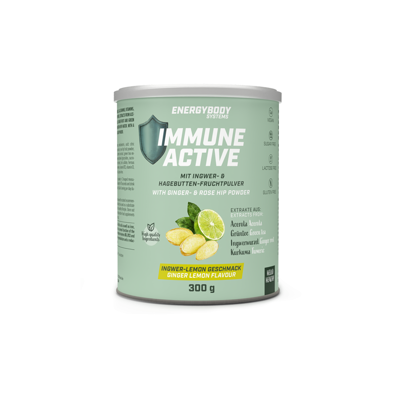 Supliment alimentar cu inulină, L-glutamină, vitamine, minerale, pudră de fructe de măceș, extracte din acerola, semințe de struguri, curcumă, rădăcină de ghimbir și ceai verde. Pulbere pentru preparare cu apă. Cu o aromă ușor picantă de ghimbir pur. Cu îndulcitori. Vitaminele C, D B6, B12 și acidul folic, precum și fierul, zincul și seleniul contribuie la funcționarea normală a sistemului imunitar. Magneziul și vitaminele B6, B12 și C contribuie la un metabolism energetic normal și la reducerea oboselii.