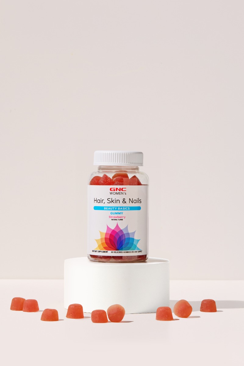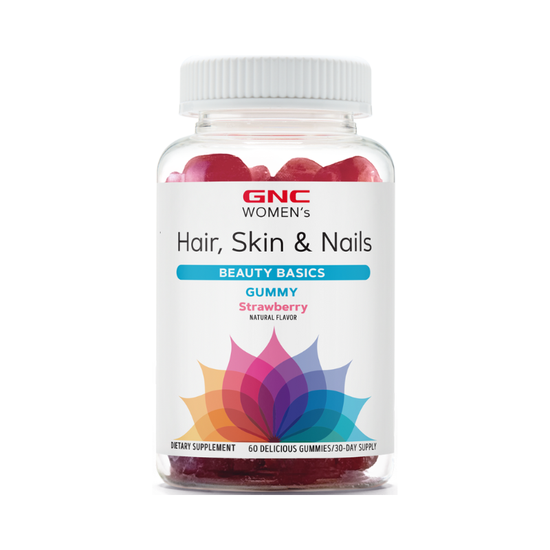 GNC Women’s Hair, Skin & Nails Strawberry , jeleuri cu biotina si vitamine pentru frumusetea parului, pielii si unghiilor GNC Women’s Hair, Skin & Nails este un supliment sub forma de jeleuri masticabile, cu un gust delicios de capsuni, formulat special pentru femei. Contine biotina, vitamina C si E, alaturi de alti nutrienti esentiali care contribuie la mentinerea sanatatii si aspectului parului, pielii si unghiilor. GNC Women’s Hair, Skin & Nails este alegerea ideala pentru femeile care isi doresc o solutie eficienta si gustoasa pentru sustinerea frumusetii naturale, din interior spre exterior Beneficii:• Contine biotina – sprijina cresterea parului si sanatatea unghiilor;• Vitamine antioxidante (C si E) – contribuie la protejarea celulelor impotriva stresului oxidativ;• Aroma naturala de capsuni – gust placut si usor de consumat;• Fara gluten si fara coloranti artificiali – formula curata si sigura;• 60 jeleuri (30 portii) – pentru administrare zilnica timp de o luna. *Produsul este un supliment alimentar si nu trebuie sa inlocuiasca o dieta variata si echilibrata si un stil de viata sanatos. A nu se lasa la indemana copiilor. A nu se depasi doza recomandata zilnic.