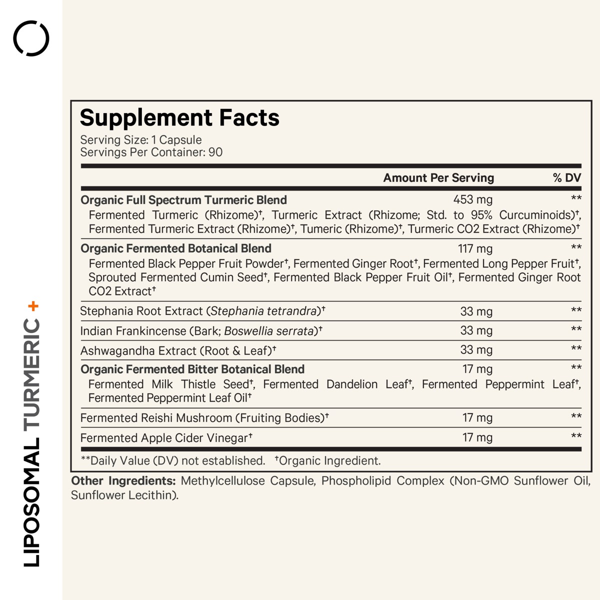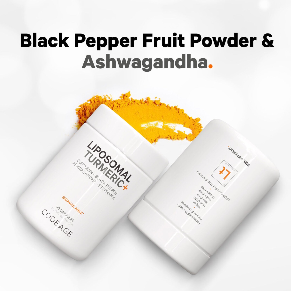 CodeAge Turmeric Lipozomal Fermentat + Piper negru, Curcumin si Ghimbir Mod de administrare: pentru adulti, administrati 3 capsule zilnic impreuna cu 240 ml de apa sau orice bautura preferata. Poate fi administrata impreuna cu sau fara mancare. Prezentare: 90 capsule | Portie de servire: 3 capsule | Portii per flacon: 30 Compozitie / portie Cantitate %VNR Total grasimi 0 g 0%** Acizi grasi 0 g 0%** Amestec organic cu spectru complet de turmeric Turmeric fermentat (rizom)†, extract de turmeric (rizom; Standardizat la 95% Curcuminoizi)†, extract de turmeric fermentat (rizom) †, turmeric (rizom) †, extract CO2 de turmeric (rizom)† 453 mg * Amestec botanic organic fermentat Pudra de fructe de piper negru fermentat†, radacina de ghimbir fermentata†, fructe de piper lung fermentat†, seminte de chimen germinate si fermentate†, ulei de fructe de piper negru fermentat†, extract CO2 de radacina de ghimbir fermentat† 117 mg * Extract de radacina de Stephania (Stephania tetrandra)† 33 mg * Tamaie Indiana (extract din scoarta de Boswellia serrata)† 33 mg * Extract de Ashwagandha (radacina si frunze)† 33 mg * Amestec botanic organic fermentat si amarui Seminte de silimarina fermentate†, frunze de papadie fermentate†,frunze de menta fermentate†, ulei de frunze de menta fermentat† 17 mg * Ciuperca Reishi fermentata (corpul fructifer) 17 mg * Otet de mere fermentat† 17 mg * *Valoarea nutritionala de referinta nu a fost stabilita.**Valoarea nutritionala de referinta, conform Reg. UE nr. 1169/2011. Ingrediente: Amestec organic cu spectru complet de turmeric, amestec botanic organic fermentat, extract de radacina de stephania, tamaie indiana, extract de ashwagandha, amestec botanic organic fermentat si amarui, ciuperca reishi, otet de mere fermentat, capsula din metilceluloza, lecitina din floarea-soarelui, fosfatidilcolina. Atentionari: A nu se depasi doza zilnica recomandata. Daca sunteti insarcinata, alaptati, aveti varsta sub 18 ani, aveti o afectiune medicala sau administrati un tratament medicamentos, consultati un medic specialist inainte de a utiliza acest produs sau orice alt supliment alimentar. Intrerupeti administrarea cu 2 saptamani inaintea unei interventii chirurgicale. Va rugam sa fiti precauti daca aveti alergie sau sensibilitate la oricare dintre ingredientele mentionate. Produsul este un supliment alimentar si nu trebuie sa inlocuiasca o dieta variata si echilibrata si un stil de viata sanatos. A nu se lasa la indemana si vederea copiilor. Nu contine: organisme modificate genetic, soia, lactate, gluten. Produs vegan. Conditii de pastrare: in ambalajul original, la loc uscat si racoros. Producator: CODEAGE LLC, Boca Raton, FL 33431, USA Fabricat in: SUA