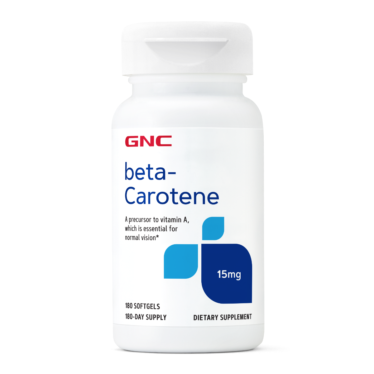 GNC Beta-Caroten 15 mg Beta carotenul este des intalnit in conjunctie cu Vitamina A. Beta carotenul este pigmentul natural din plante din grupul carotenoizilor de culoare portocalie si este un precursor de vitamina A. In organismul nostru, beta-carotenul este convertit in vitamina A. Carotenoizii sunt implicati in sanatatea parului, pielii si a unghiilor si pot sustine un ten neted si o piele uniform bronzata. Beneficii: Sursa naturala de vitamina A, esentiala pentru o vedere normala; Stimuleaza productia de melanina, imbunatatind capacitatea de bronzare a pielii si oferind un bronz frumos, sanatos si de durata; Protejaza pielea si tesuturile mucoase ale organismului; Sustine sanatatea pielii, unghiilor si parului; Are efect antioxidant; Nu contine zahar, amidon, coloranti si arome artificiale, conservanti, sodiu, grau, gluten, lactate; Numar mare de administrari, ofera 180 de portii per flacon. *Produsul este un supliment alimentar si nu trebuie sa inlocuiasca o dieta variata si echilibrata si un stil de viata sanatos.