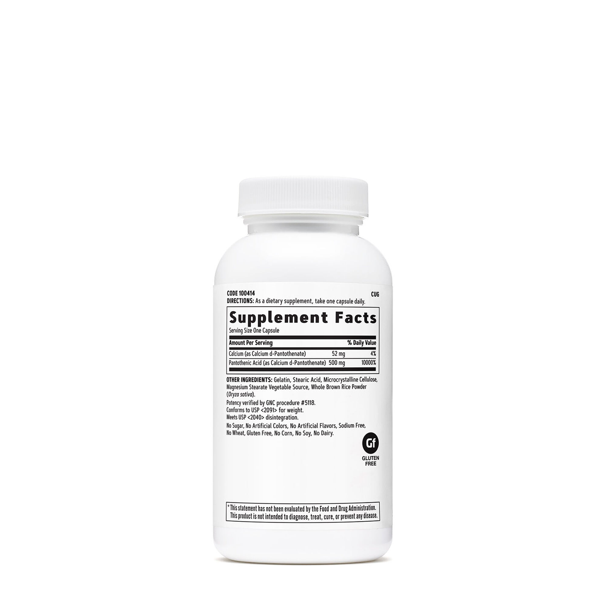 GNC Acid Pantotenic 500 mg Acidul Pantotenic mai este cunoscut si ca vitamina B-5, se gaseste intr-o varietate de alimente si joaca un rol important pentru metabolismul energetic. Toate vitaminele B convertesc alimentele pe care corpul le consuma in energie. Acidul pantotenic este un component al coenzimei A. Coenzima A este una din cele mai importante enzime care controleaza procesul metabolic, practic converteste nutrientii in energie. Coenzima A initiaza ciclul tricarboxilic, cunoscut sub denumirea ciclul Krebs. Acidul Pantotenic este necesar pentru metabolismul acizilor grasi. Beneficii : Necesar pentru metabolismul energetic; Este component al Coenzimei A; Ajuta la mentinerea unui nivel sanatos de acizi grasi; Formula concentrata cu 500 mg per portia de servire. *Produsul este un supliment alimentar si nu trebuie sa inlocuiasca o dieta variata si echilibrata si un stil de viata sanatos.