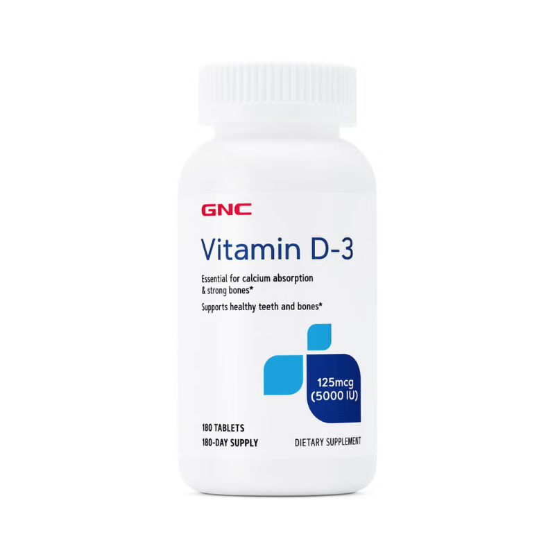GNC Vitamina D-3 5000 UI Naturala 100% din Lanolina Vitamina D-3 (colecalciferol din lana de oaie (lanolina)) este necesara pentru formarea sanatoasa a oaselor. Este esentiala pentru absorbtia Calciului si reglarea nivelului de Calciu si Fosfor din organism. Ca rezultat, Vitamina D este vitala pentru sanatatea oaselor si a dintilor. Deoarece absorbtia Calciului depinde de Vitamina D, persoanele cu deficit sunt predispuse deficientelor de Calciu. Beneficii: Vitamina D naturala, contine Colecalciferol D-3, extrasa din lanolina (grasimea din lana de oaie); Produs ultra concentrat, fiecare tableta furnizeaza 5000 IU de Vitamina-D3; Vitamina liposolubila esentiala in absorbtia Calciului; Ajuta la mentinerea sanatatii oaselor si a dintilor; Ofera suport pentru imunitate; Flacon cu 180 de tablete; Nu contine coloranti si arome artificiale, grau, gluten, soia si lactate. *Produsul este un supliment alimentar si nu trebuie sa inlocuiasca o dieta variata si echilibrata si un stil de viata sanatos.