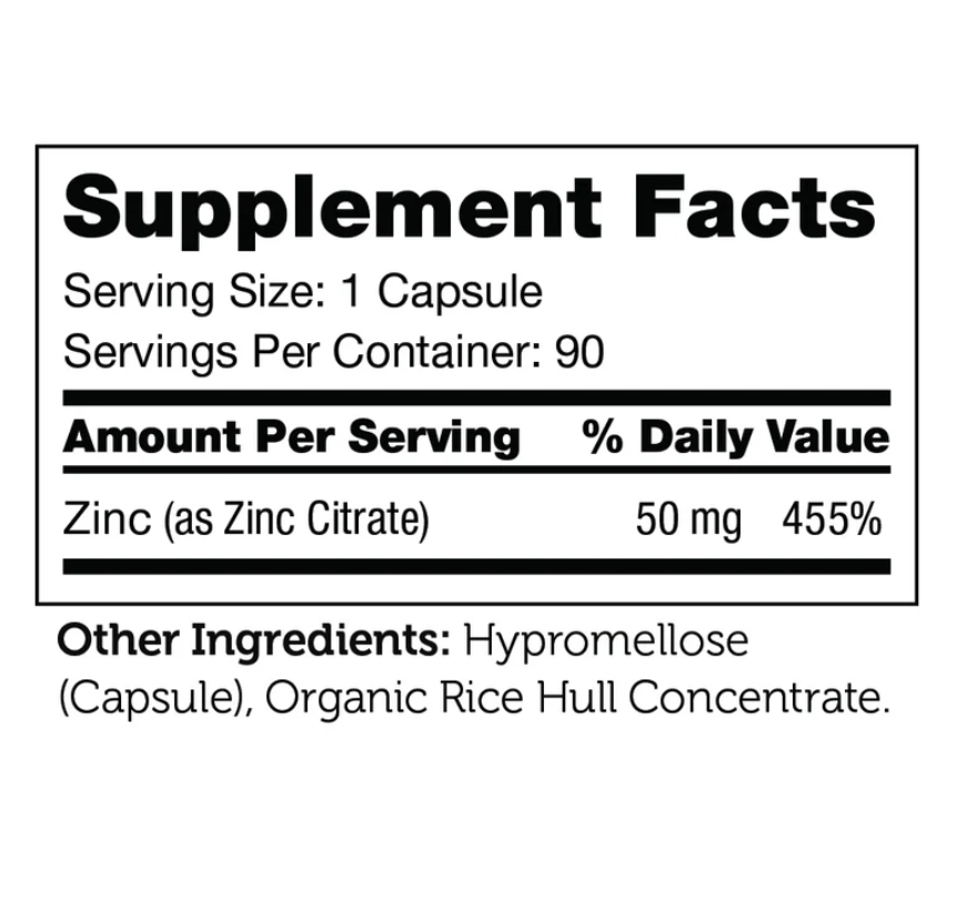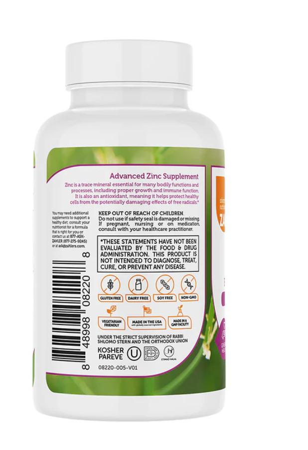 ZAHLER® Zinc, Bioactive Zinc Citrate, Advanced Zinc Supplement, Zinc Citrat Bioactiv Mod de administrare: Ca supliment alimentar, administrati 1 capsula zilnic. Prezentare: 90 capsule Portie de servire: 1 capsula Portii per flacon: 90 Compozitie / portie Cantitate % VNR* Total grasimi 0 g 0%** Acizi grasi 0 g 0%** Zinc (citrat de zinc) 50 mg 500%** *Valoarea nutritionala de referinta nu este stabilita. **Valoarea nutritionala de referinta, conform Reg UE, nr 1169/2011. Ingrediente: Zinc, hipromeloza (capsula), concentrat din coji de orez provenit din agricultura ecologica. Atentionari: Produsul este un supliment alimentar si nu trebuie sa inlocuiasca o dieta variata si echilibrata si un stil de viata sanatos. A nu se depasi doza recomandata zilnic. A nu se lasa la indemana si la vederea copiilor. Consultati un medic specialist inainte de a utiliza acest produs daca sunteti insarcinata, alaptati, administrati un tratament medicamentos sau aveti o afectiune medicala. Nu folositi daca sigiliul este rupt sau lipseste. Nu contine: gluten, lactate, soia, organisme modificate genetic. Produs kosher. Produs vegetarian. Conditii de pastrare: in flaconul original, la loc uscat, la temperatura camerei, ferit de lumina directa a soarelui. A se consuma, de preferinta, inainte de sfarsitul: vezi pe ambalaj. Producator: ADVANCED NUTRITION BY ZAHLER, NEW MILFORD, NJ 07646 Fabricat in: SUA