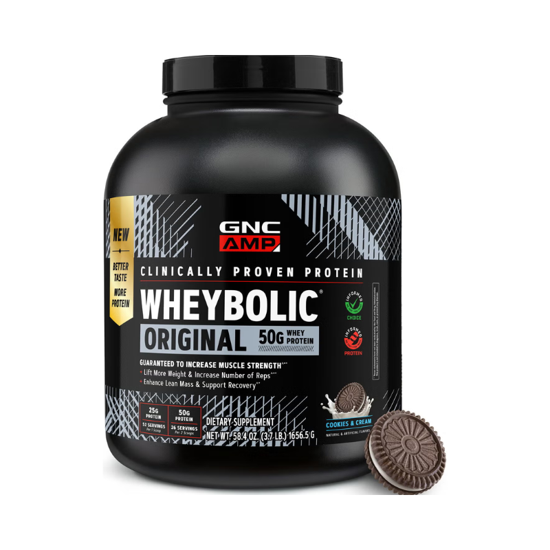 GNC AMP New Wheybolic™, Proteina din zer, studiata clinic, cu aroma de biscuiti cu crema GNC AMP Wheybolic® este una dintre cele mai bine cercetate formule proteice din portofoliul GNC, dezvoltata pentru a sustine forta musculara, rezistenta si sinteza proteica, atunci cand este utilizata impreuna cu un program de exercitii fizice. Formula sa avansata contine un nucleu proteic din zer imbogatit cu un aport crescut de leucina si BCAA, comparativ cu o proteina standard din zer – elemente esentiale pentru stimularea sintezei proteice si sustinerea dezvoltarii musculare. Sustine-ti stilul de viata, zi de zi ⚡Aportul optim de proteine este esential nu doar pentru antrenamente, ci si pentru: mentinerea masei musculare dupa 30-40 de ani sustinerea metabolismului mentinerea senzatiei de satietate refacerea organismului in perioade solicitante sustinerea vitalitatii si energiei zilnice ⚡De ce este Wheybolic® diferita? ✔ Imbogatita cu mai multa leucina si BCAA decat proteinele standard din zer Leucina este aminoacidul-cheie responsabil pentru activarea sintezei proteice musculare. Un aport optim sustine refacerea, tonusul si adaptarea musculara. ✔ Contribuie la cresterea fortei musculare In mai multe studii clinice randomizate, participantii care au utilizat formula bogata in leucina, timp de 8 saptamani, in combinatie cu antrenamente de rezistenta progresive, au inregistrat cresteri semnificative ale fortei si performantei comparativ cu placebo. ✔ Mai multa proteina per portie · performanta la antrenamente · un numar mai mare de repetari · rezistenta musculara · dezvoltarea masei musculare ✔ Testata pentru sportivi – siguranta certificate Wheybolic® este certificata Informed Protein si Informed Choice, fiind testata regulat pentru peste 285 de substante interzise in sport, in cadrul unui program riguros anti-doping. ⚡De ce este potrivita si pentru viata de zi cu zi? Proteina nu este doar pentru culturism sau sport de performanta. Dupa varsta de 30 de ani, masa musculara incepe natural sa scada. Un aport proteic adecvat contribuie la:menținerea masei musculare sustinerea metabolismului mentinerea senzației de satietate recuperarea organismului in perioade solicitante sustinerea energiei si vitalitatii zilnice ⚡Studiul Clinic #1 Un studiu randomizat, dublu-orb, placebo-controlat, desfasurat timp de 8 saptamani pe 33 de barbati sanatosi, a comparat un amestec proprietar de proteina din zer + leucina cu un placebo izocaloric pe baza de carbohidrati, administrat inainte si dupa antrenamente de rezistenta. ✅Rezultate: · Cresteri semnificativ mai mari ale fortei musculare comparativ cu placebo · Cresterea suprafetei sectiunii transversale musculare (indicator al dezvoltarii masei musculare) ⚡Studiul Clinic #2 Intr-un studiu de 8 saptamani pe 39 de barbati, s-a comparat: 1 set de antrenament de rezistenta + supliment activ vs. 2 seturi de antrenament fara supliment ✅Rezultate: · Grupul care a utilizat proteina bogata in leucina a obtinut castiguri similare de forta si rezistenta musculara comparativ cu grupul care a efectuat volum dublu de antrenament. ⚡Studiul Clinic #3 Intr-un alt studiu clinic randomizat, 100% dintre participantii care au consumat o data pe zi amestecul proteic bogat in leucina, timp de 8 saptamani, impreuna cu antrenament progresiv, au inregistrat cresteri semnificative ale fortei picioarelor si rezistentei musculare, comparativ cu grupurile placebo. *Produsul este un supliment alimentar si nu trebuie sa inlocuiasca o dieta variata si echilibrata si un stil de viata sanatos.
