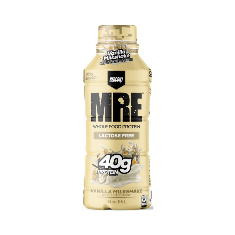 REDCON1 MRE whole food protein shake RTD, Shake proteic din alimente integrale RTD cu aroma de milkshake de vanilie Incearca noua formula completa de proteine gata de consum din gama REDCON1. Acesta este conceput pentru a oferi o sursa rapida si de calitate de proteina derivata din alimente integrale, ideala pentru sustinerea masei musculare, a recuperarii si pentru completarea nutritiei zilnice. Beneficii: · 40 g proteina din „whole food” (alimente integrale) per portie; · Profil nutritiv echilibrat: aprox. 230 calorii per portie; · Aroma delicioasa de milkshake de vanilie, fiind usor de savurat direct din sticla sau in combinatie cu apa/ lapte; · Potrivita pentru momentele „on the go” cand ai nevoie de o optiune proteica convenabila; · Formula cu proteine multiple: surse din carne, orez, mazare, pentru un profil complet, · Fara zahar, fara lactoza. *Produsul trebuie consumat ca parte a unei diete echilibrate.
