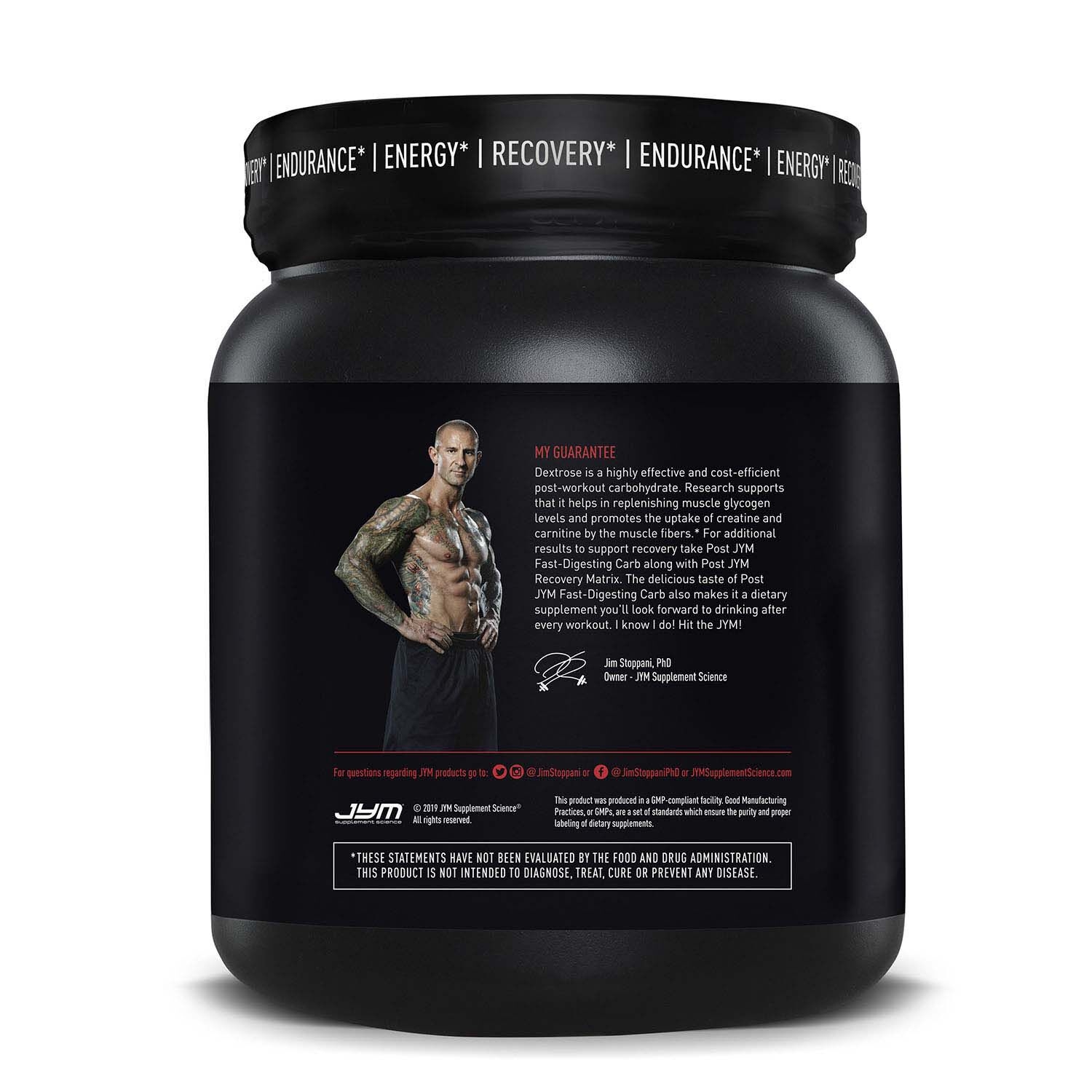 JYM® POST JYM® Fast Digesting Carbs, Carbohidrati cu Digestie Rapida, Dextroza Dextroza este cel mai eficient si accesibil carbohidrat cu absorbtie sporita, recomandat dupa cele mai intense antrenamente. Cercetarile au aratat ca aceasta ajuta la refacerea rezervelor de glicogen din musculatura si sporeste absorbtia creatinei si a carnitinei in fibrele musculare. Gustul delicios te va face sa il consumi dupa fiecare antrenament. Beneficii: Produsul contine 30 g dextroza per servire; Sustine absorbtia nutrientilor la nivel muscular; Reface rezervele de glicogen; Sustine o recuperare mai rapida dupa antrenamente. *Produsul este un supliment alimentar si nu trebuie sa inlocuiasca o dieta variata si echilibrata si un stil de viata sanatos.